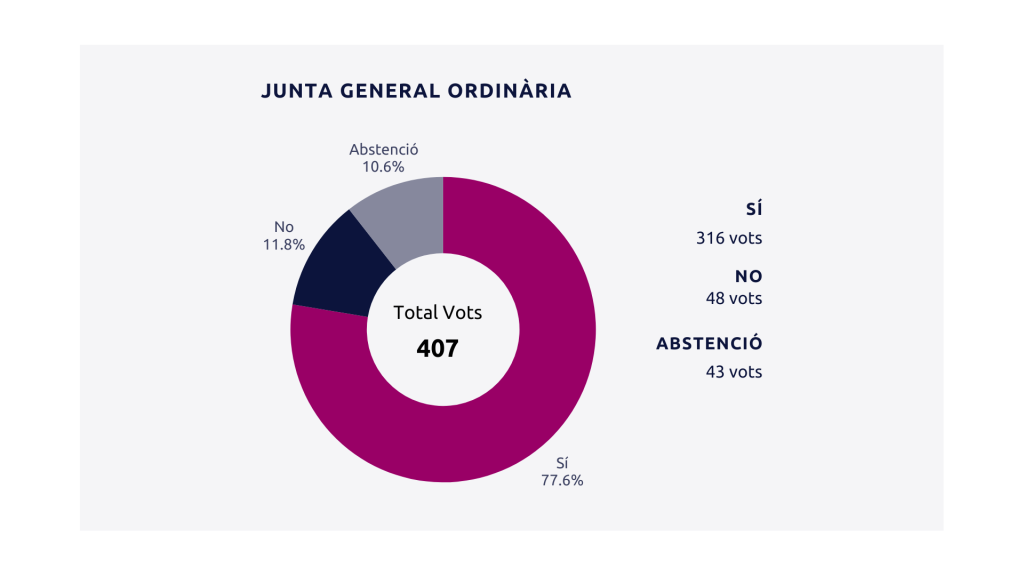 Un total de 402 persones van votar entre els dies 17 i 18 de desembre. D’aquestes, prop del 78% dels col·legiats va aprovar el pressupost destinat per 2026. Els “no” van representar prop del 12% dels vots i les abstencions van quedar en un 10%, trencant la dinàmica de Juntes anteriors, on quedaven per sobre del “no”.