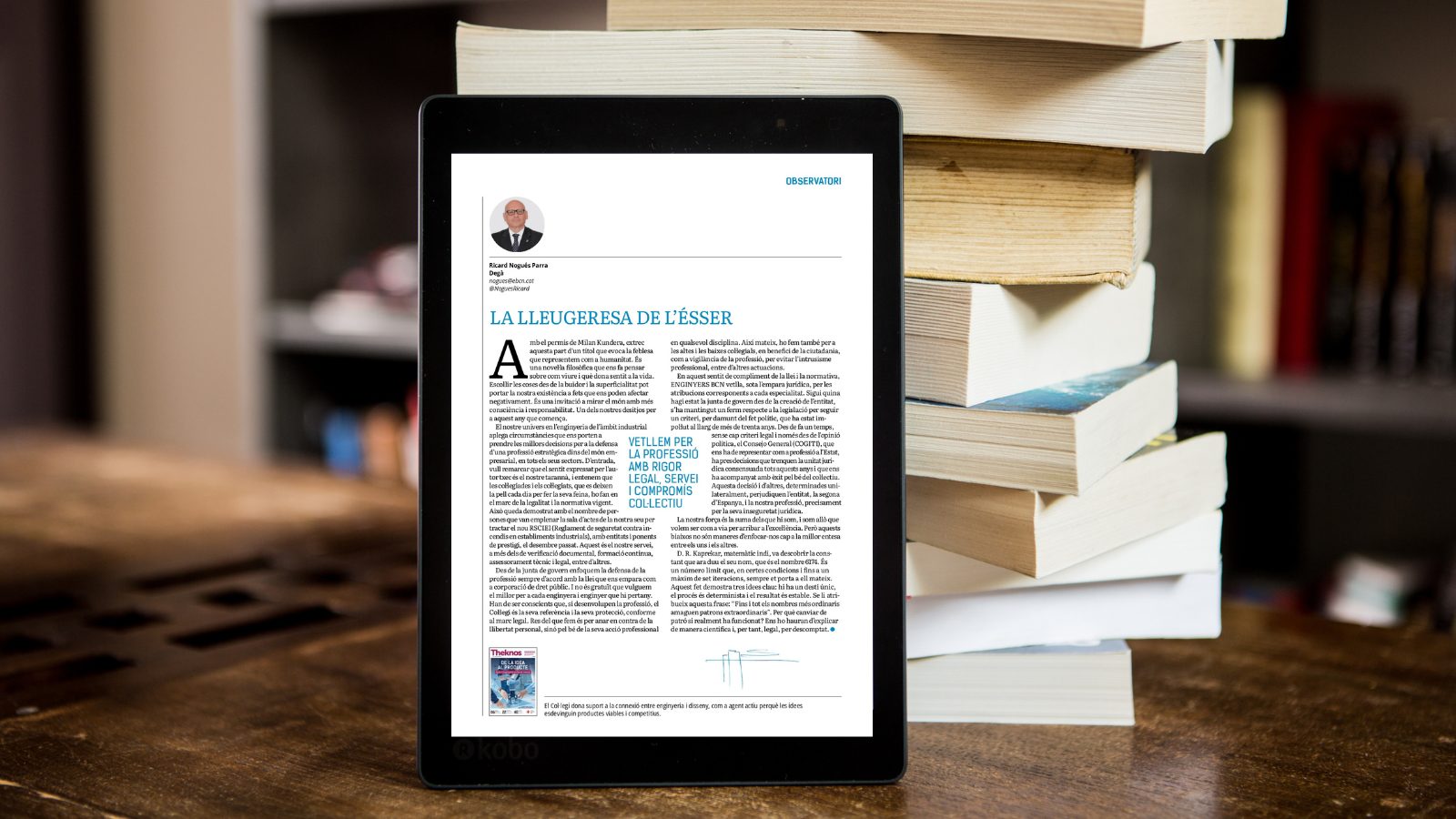 En l’Observatori del Theknos de gener-febrer, el degà Ricard Nogués reflexiona sobre com la vida i la professió poden ser afrontades amb responsabilitat i consciència. Inspirant-se en La lleugeresa de l’ésser de Milan Kundera, recorda que viure amb profunditat i sentit evita decisions superficials que poden tenir conseqüències negatives. Al mateix temps, destaca el paper d’ENGINYERS BCN en la defensa de la professió dins de l’àmbit industrial, garantint el compliment de la legalitat, oferint formació, assessorament tècnic i legal, i protegint els enginyers davant l’intrusisme i la inseguretat jurídica. També critica decisions unilaterals del Consejo General (COGITI) que trenquen la unitat jurídica aconseguida durant anys. Finalment, fa una analogia amb el descobriment del matemàtic D. R. Kaprekar i el nombre 6174, subratllant que els processos i els patrons fiables i estables, tant en la vida com en la professió, són clau per assolir l’excel·lència i la seguretat.
