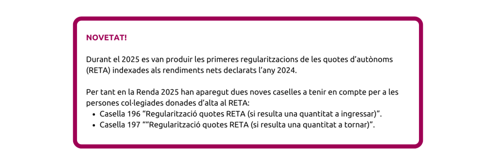 Renda 2025: les quotes col·legials desgraven